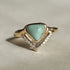 This stunning 14k gold ring features a trillion-cut variscite centerpiece surrounded by pave diamonds.